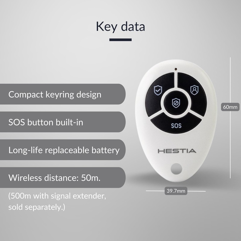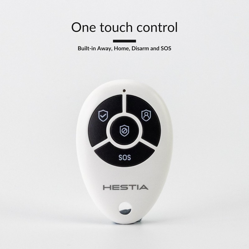 HESTIA System Remote Controller Keyring for SAFE-TECH Smart Home Security System, 433MHz, Arm, Disarm, SOS Button, HS-01-RCL