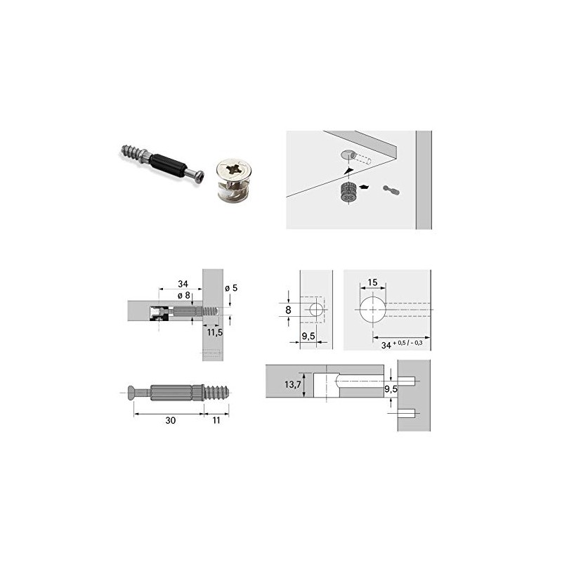 - Pack of 50 HETTICH body connectors eccentric Rastex 15 with collar and screw-in dowels Twister DU 232 T