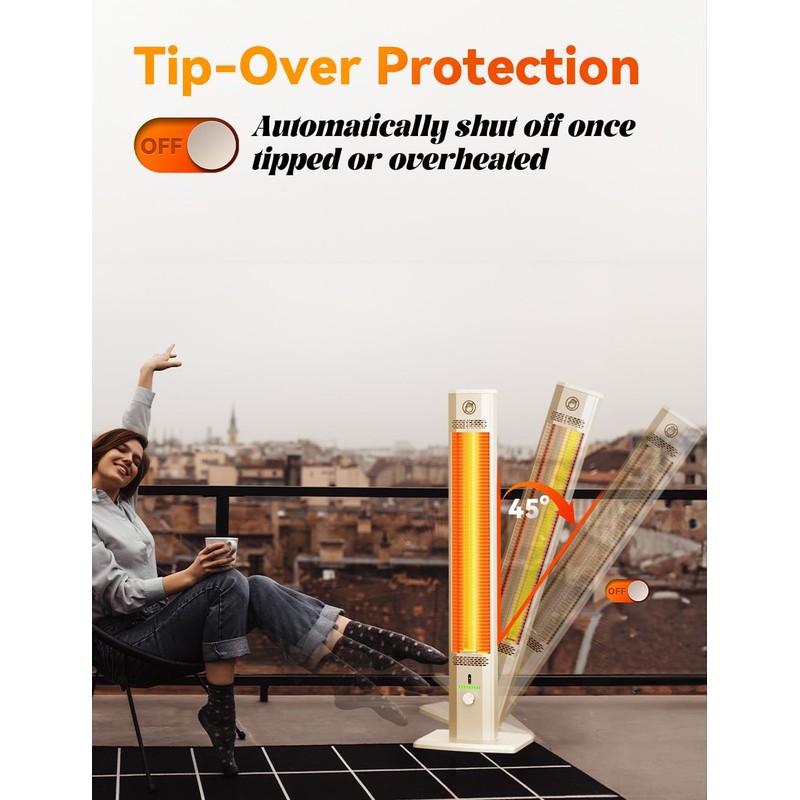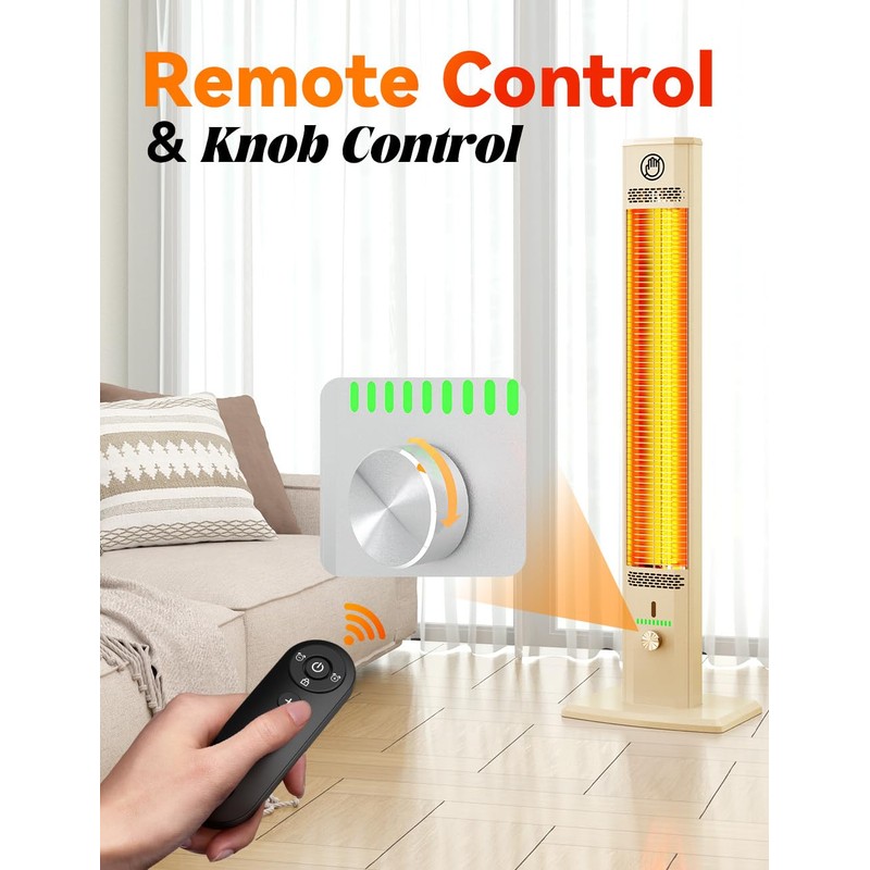 • đŸ”„ă€Efficient Infrared Heating Tech】Our infrared heaters are equipped with a heating tube that spans two-thirds of its height and efficient carbon fiber heating wires, which provide long and stable service life. The upgraded motor provides high-quality internal heat dissipation, ensuring that the heating performance remains at an optimal level, with a thermal efficiency of up to 90%. Patio heaters are safe and efficient, especially suitable for families pursuing a healthy life.