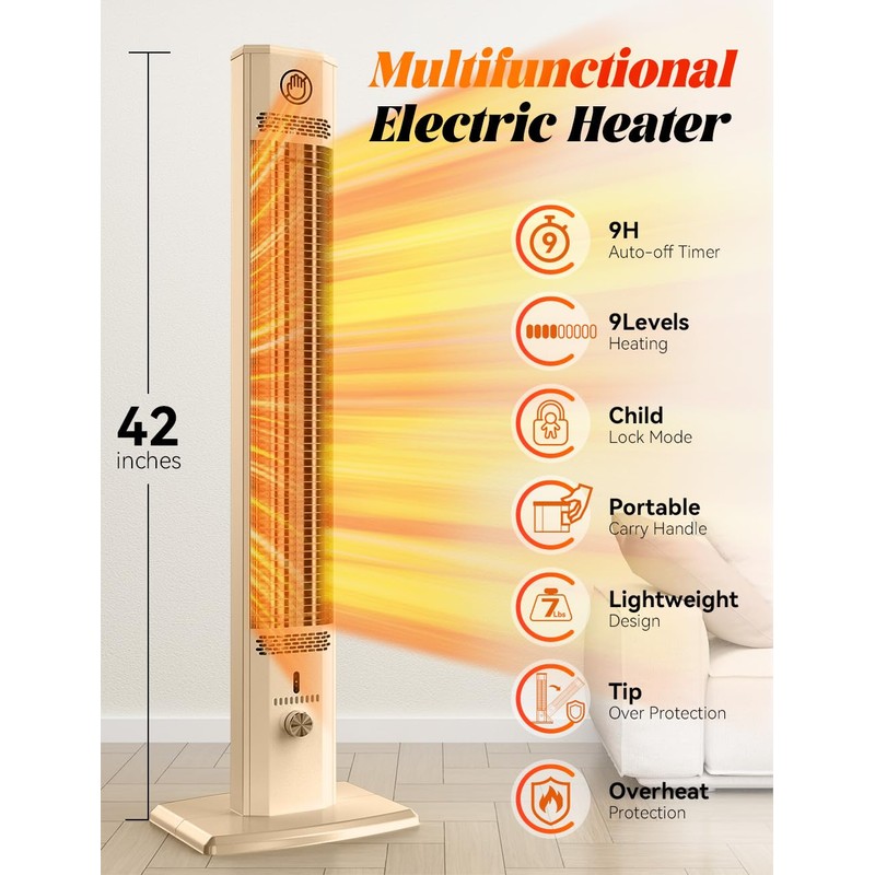 • đŸ”„ă€42 INCH Heater with 1S Fast Heating】Our 42 Inch tower heater provides warmth in a 100° wide-angle heating range, you can share warmth with family and friends during the cold season. With a heating area of​up to 300 square feet, electric heater indoor is the perfect choice for quickly heating the house in winter. 1S fast heating provides instant concentrated heat that transfers heat directly to your body, making you feel comfortable and warm instantly.