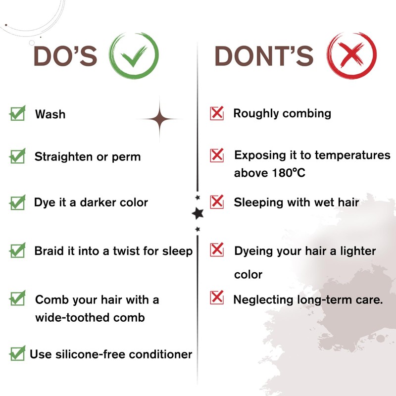 - Hair colour: Our clip in extensions can be dyed to match your colour. However, they can only be dyed from light to dark. Colours may vary slightly from the colour shown due to lighting, monitor settings and settings. You can choose the hair according to the display image and take into account your own root hair colour