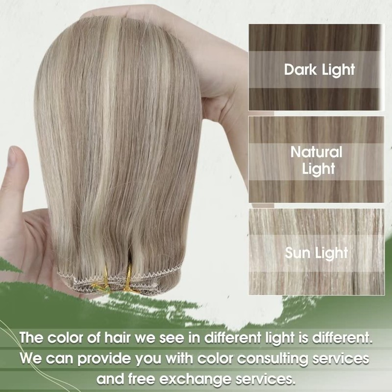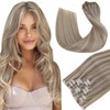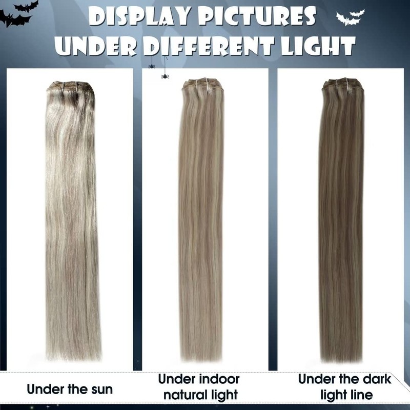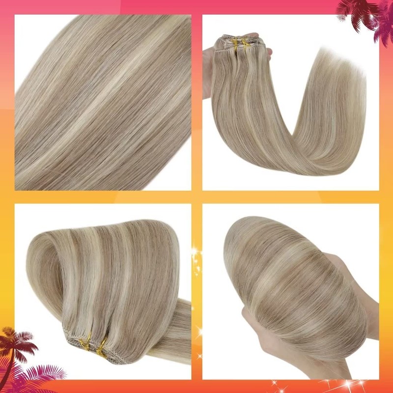 Hetto Blonde Clip-In Real Hair Extensions, Remy Extensions, Clip-In Highlight Extensions, Ash Blonde Highlights, Light Blonde #17/23, 120 g, 35 cm