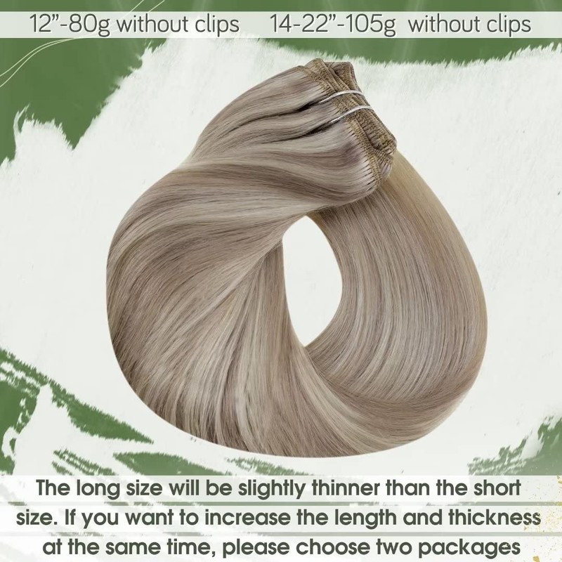 - Installation and removal: easy and quick to wear in 5 minutes. For a multi-layered look or a full head, we recommend ordering clip-in extensions in 2-3 packs.