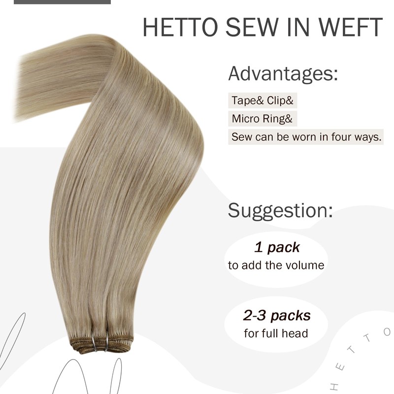 Hetto Extensions Weft Real Hair Blonde Weft Extensions, Remy Real Hair, Natural Wefts Real Hair Extensions, Highlight Blonde #17/23 80 g 35 cm