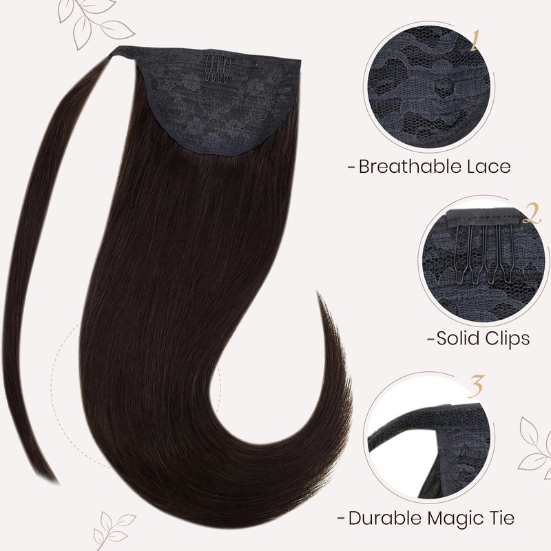- Easy installation: the human hair ponytail extensions come with an easy to install clip-in comb and a magical paste. It is easy to use. Simply wrap it around your ponytail and attach it to get that instant length. If your natural hair lacks volume, it may cause the ponytail to slip due to the heavy weight