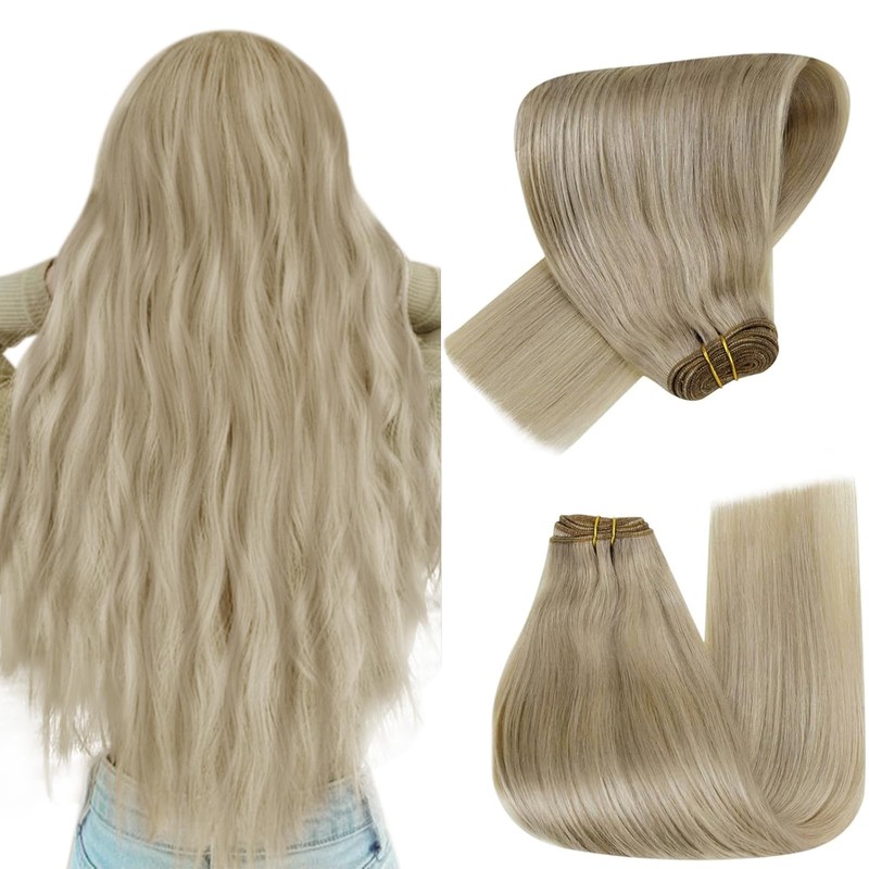Hetto Weft Hair Extensions Human Hair Blonde Sew in Hair Extensions Human Hair Dirty Blonde Highlight Light Blonde Weft Extensions Human Hair 16inch 80g #17/23