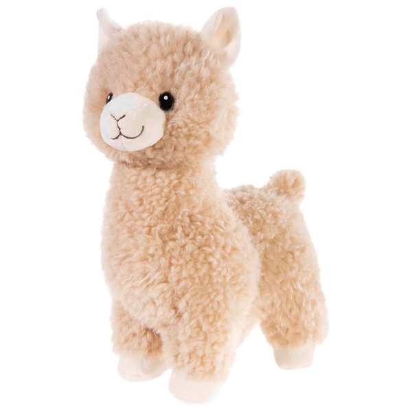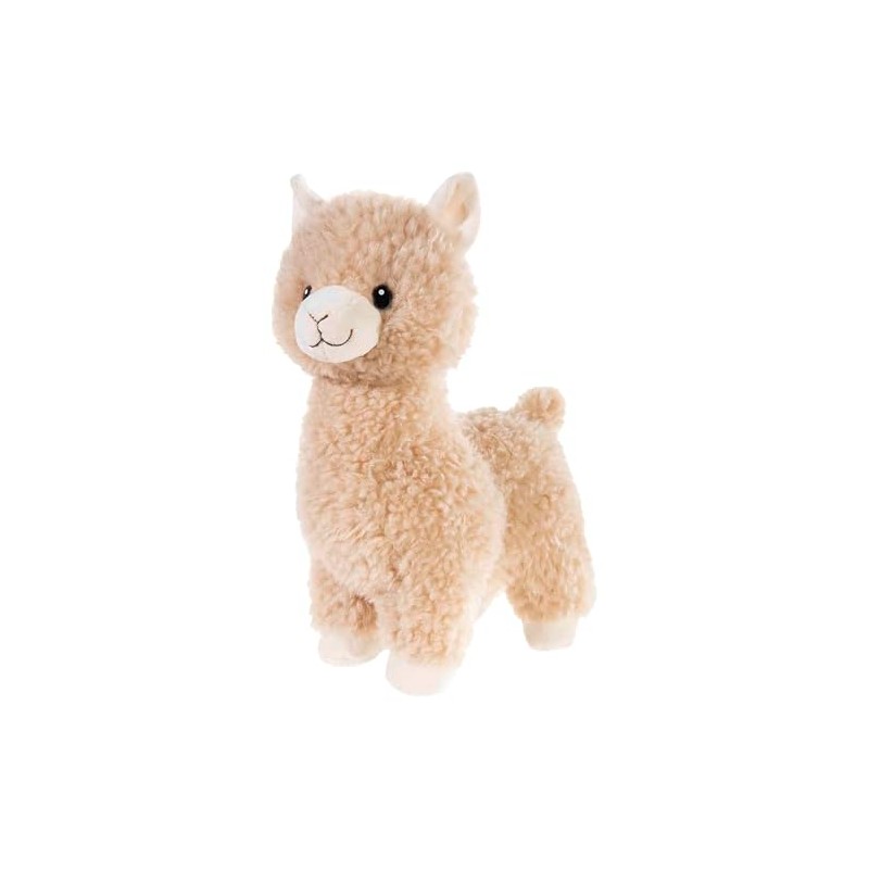 - llama; curly plush; standing position; plastic eyes; embroidered face; plush toy