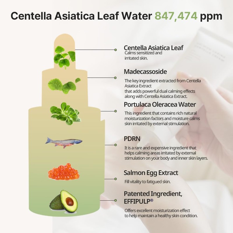 - This ampoule skips purified water and is instead packed with high-quality active ingredients, including 847,474ppm centella leaf water, madecassoside, and portulaca oleracea water, with no expense spared