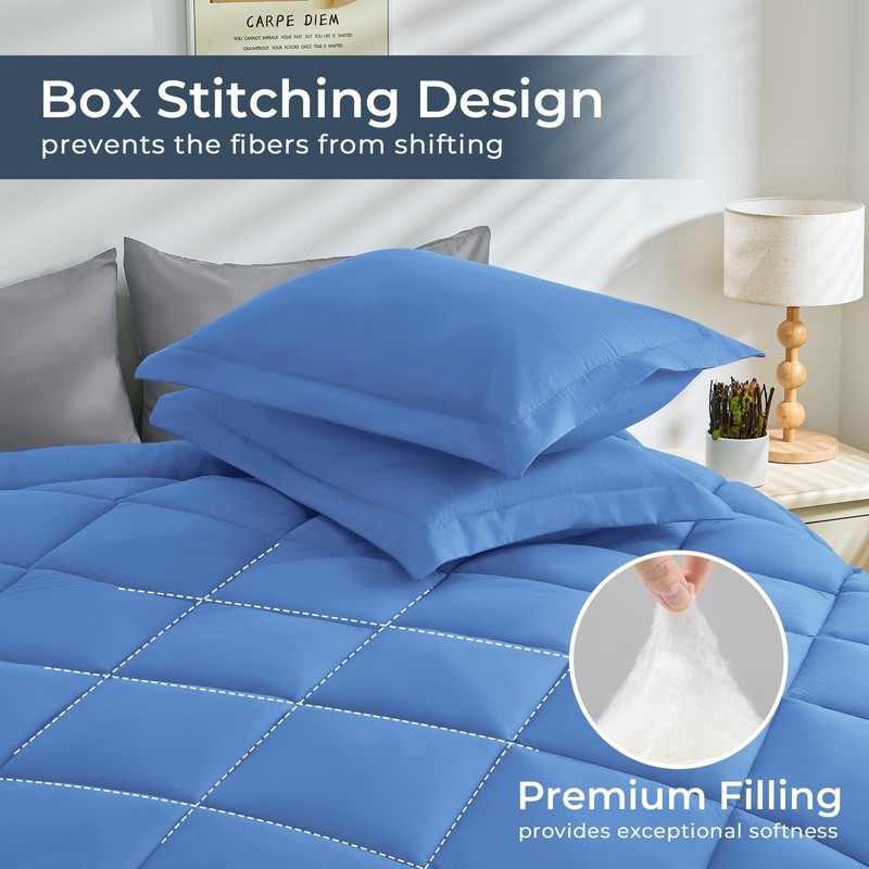 HEVUMYI Royal Blue & Light Grey Full Comforter Set - 7-Piece All Season Bed in a Bag Full, Ultra Soft Bedding Set with Comforter, Flat Sheet, Fitted Sheet, Pillowcases, Pillow Shams, Royal Blue