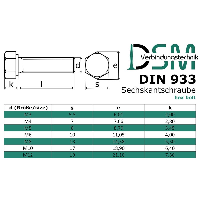 Hexagon Head Screw According to DIN 933 / ISO 4017 Stainless Steel A2, V2A, Fully Threaded, Machine Screw (Pack of 50, M6 x 65 mm)