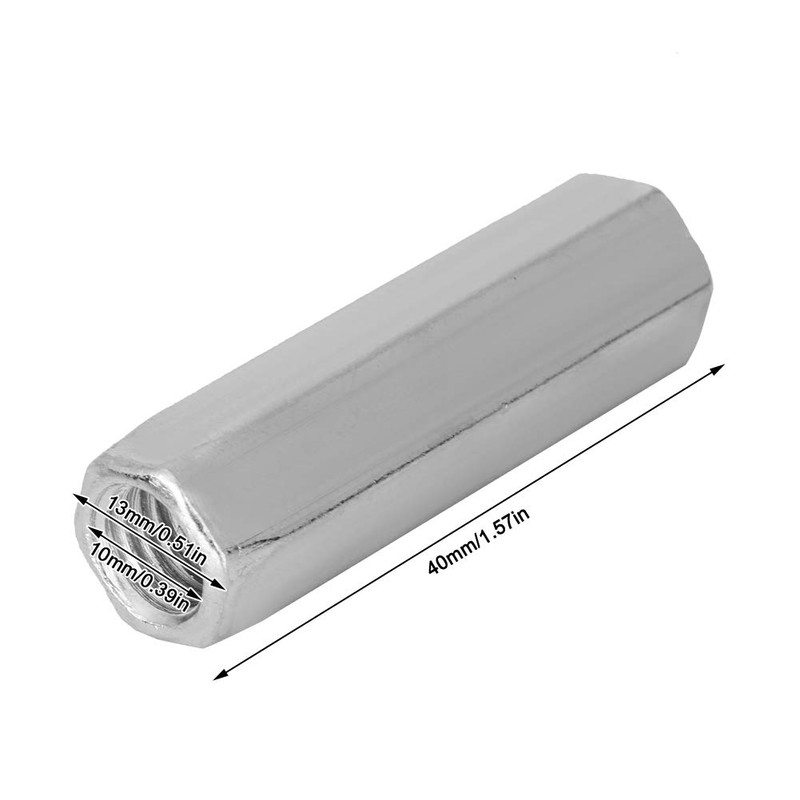 Hexagonal Long Rod Nut, Akozon Pack of 5 Galvanised Steel M10 x 40/50 Long Rod Nut Internal Thread Hex Thread Nut Thread Fixings Repair Parts (M10 x 40)