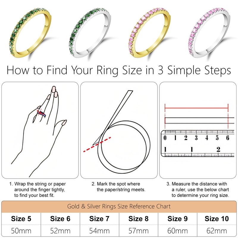 • Four Styles to Choose from: Hexasider has designed four styles of oura stacking rings, Green Diamond+Silver/Green Diamond+Gold/Pink Diamond+Silver/Pink Diamond+Gold, with stunning colorful diamond stacking finishes. You can choose the stacking ring of your choice.