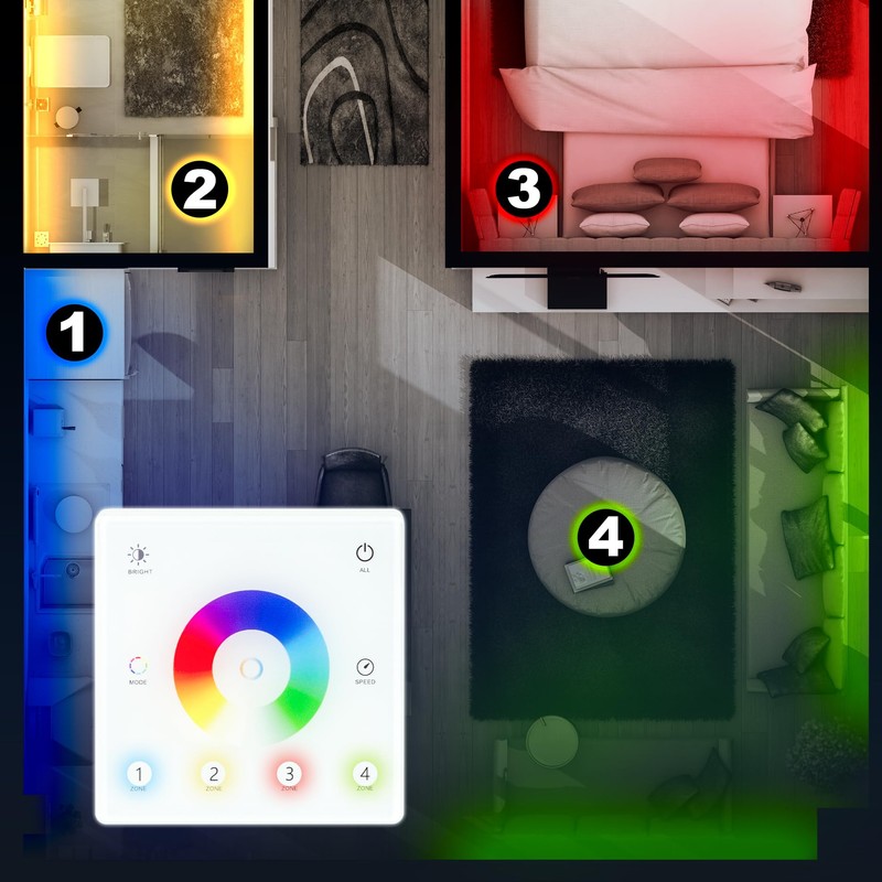 HEXIM 12-48V LED Controller & Remote Control - Smart Home & Phone Voice Control Alexa Google Assistant (Depending on Model) - (TW5-4 White - 4 Zone Wall Switch)