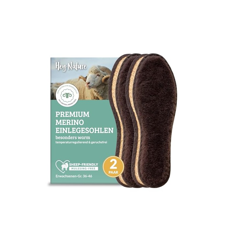 - ✔ MERINO WOOL SHOE INSOLES BETTER THAN HEATED INSOLES: The fine winter insoles from Hey Nature ensure warm feet in all shoes: sneakers, winter boots, rubber boots, leather shoes, also with insoles work shoes. Produced in the EU.