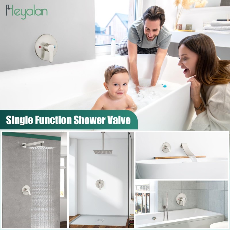 Heyalan Bathroom Shower Valve Mixer Single-Function Single Handle Shower Handle Valve Trim Kit Wall Mount Brass Faucet Shower Rough-In Valve Female Thread,Round,Brushed Nickel