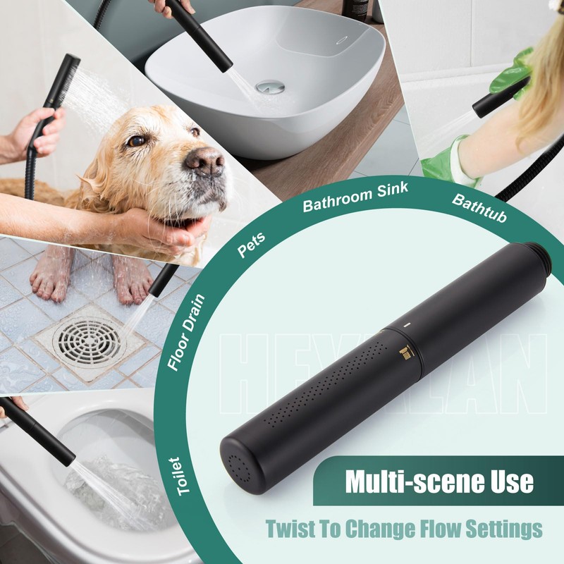 - 【2 in 1 Handheld Shower】: 2 modes for shower : Shower Function and Spray Gun Function, which is easily to switch, just twist hand shower body to change the shower mode. The advanced and flexible design make it more easier to clean the shower yourself, bath your kids, pets and clean surroundings.