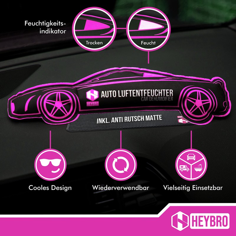 HEYBRO® Car Dehumidifier - Reusable Moisture Remover in Cool Design - Includes Non-Slip Mat - Dehumidifier Cushion Prevents Fogged Windows and Moisture