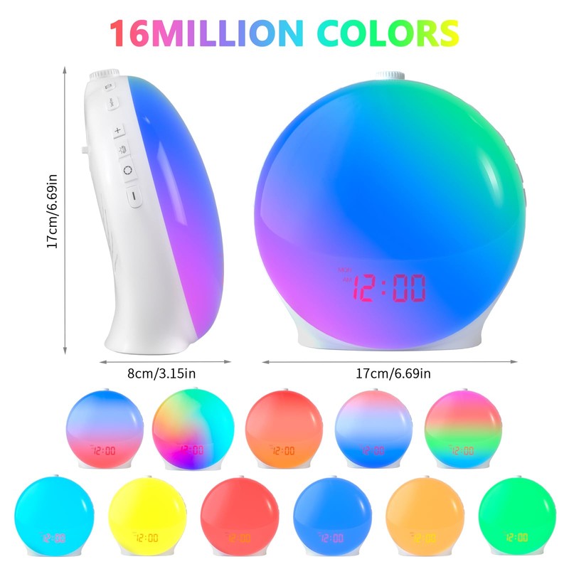- Night Light and Bedside Lamp: Our simulated sunrise and sunset wake-up lamp offers 20 brightness levels and 7 different colors. Adjust the settings to serve as a night light, reading lamp, or bedside lamp, and even transform it into a colorful mood light. Whether it's in your home or bedroom, it can create the ideal lighting ambiance.