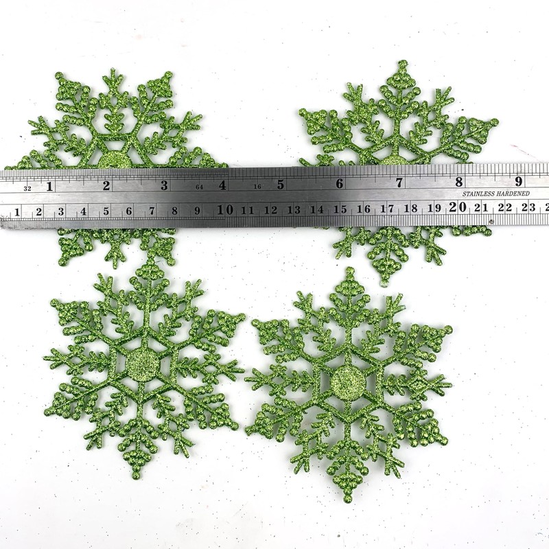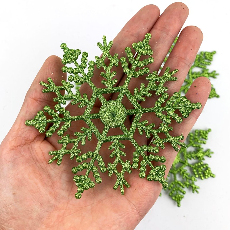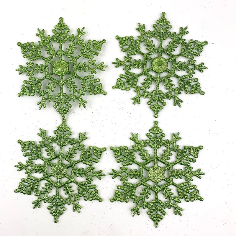 Heyiwell 24PC Green Plastic Glitter Snowflake Ornament for Christmas Tree, Xmas, Party,Window Decoration 4" Inch