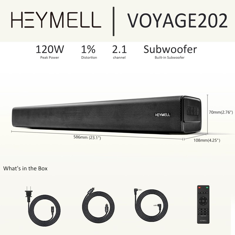 Heymell Compact 60cm/23 Inch 2.1ch Bluetooth Small Sound Bar for Smart TV 22"-43", Computer, PC. Dialogue Enhancer, HDMI ARC Optical Aux.Voyage 202
