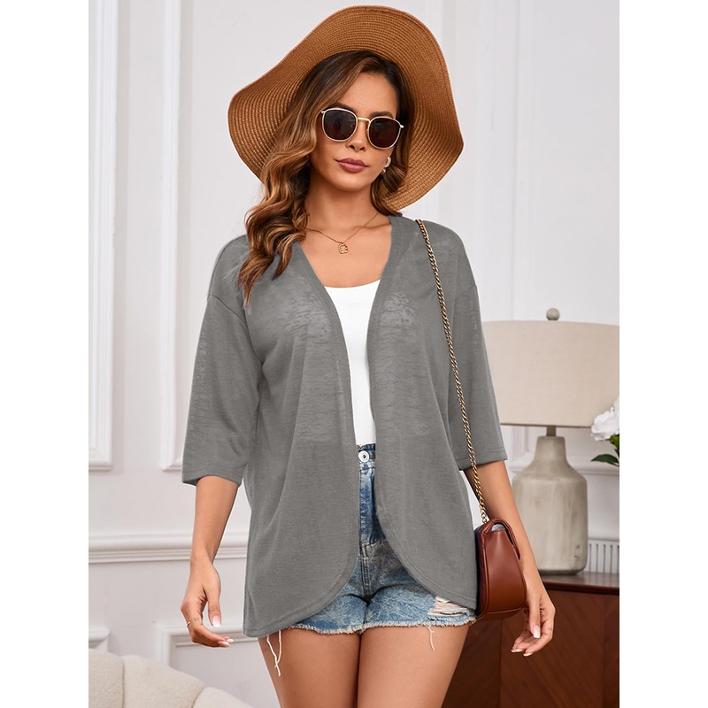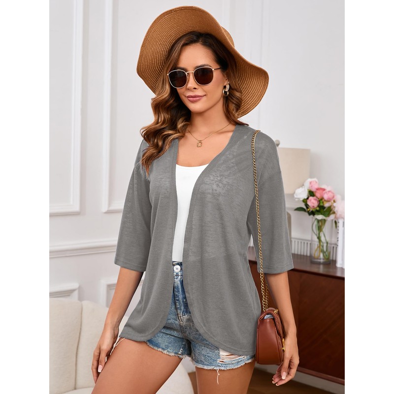 Heymoments Women's Lightweight Cardigan Open Front 3/4 Sleeve Soft Draped Summer Casual Cover Up Kimonos Tops Grey Medium Cardigans