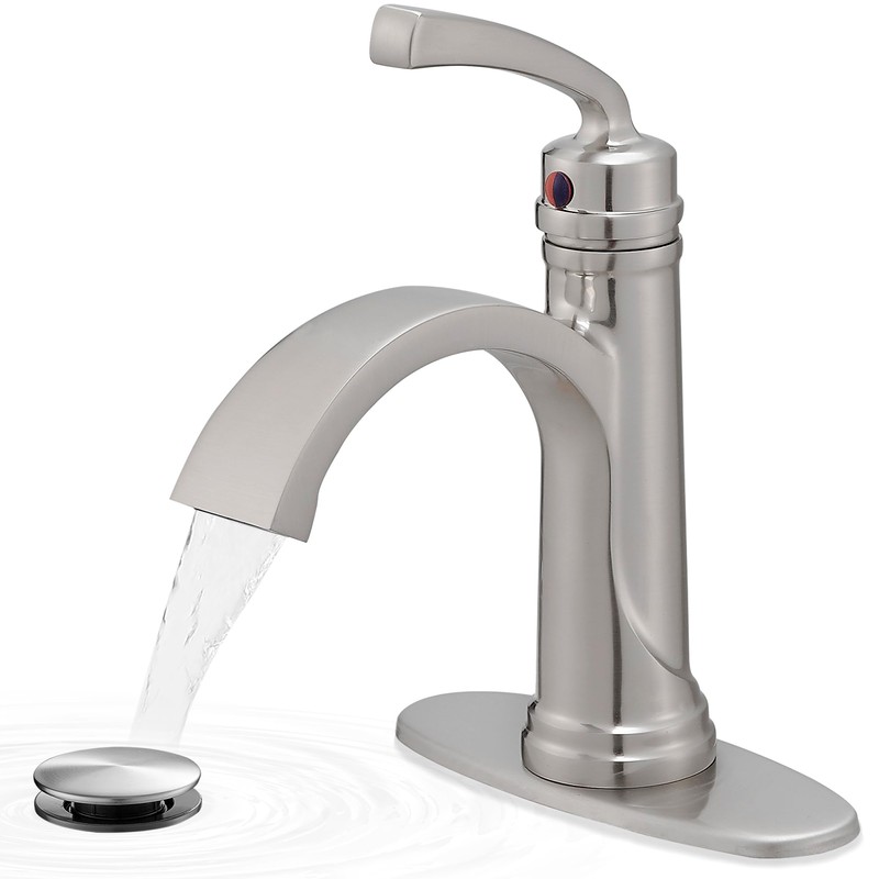 - Powerful Waterfall Flow without Splashing: In addition to having a fashionable appearance, waterfall spout ensuring a simple and effortless flow. Waterfall flow is visually pleasing and constant. It makes washing hands and brushing teeth fun for child. With waterfall flow, no matter how high you turn the water up, it won't splash all over the basin, reducing cleaning time. When you turn on brush nickel bathroom faucet, a delicate flow will gently flow over skin, like from natural source