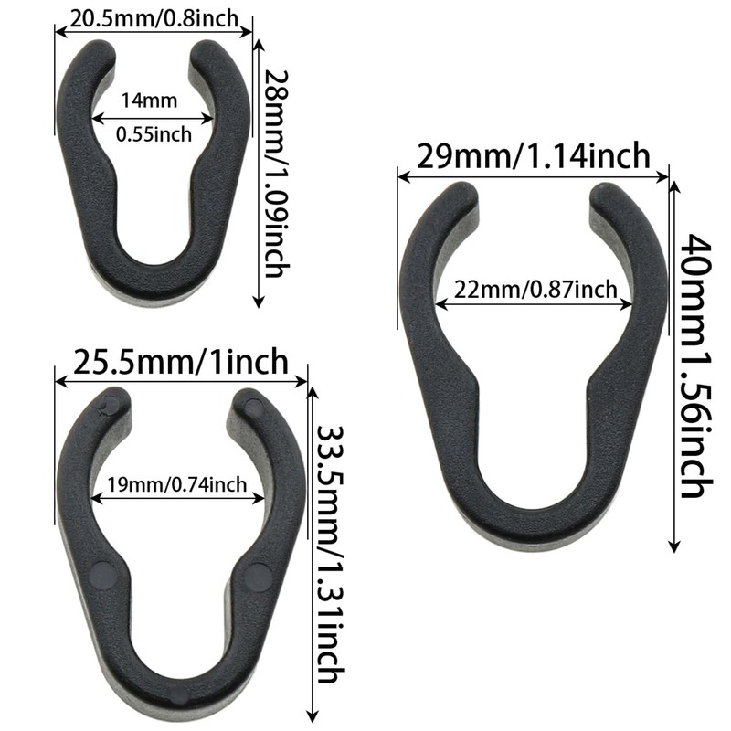 - Package contents:The package contains 15 pcs of three sizes of microphone stand cable clips. 15mm, 20mm and 25mm in diameter, 5 of each size.
