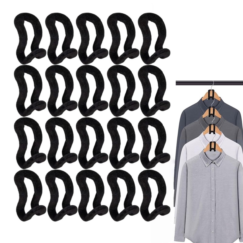- Package Including: This set includes 20 Black Velvet Flocked Hanger Connector Hooks, providing ample quantity for your closet needs.