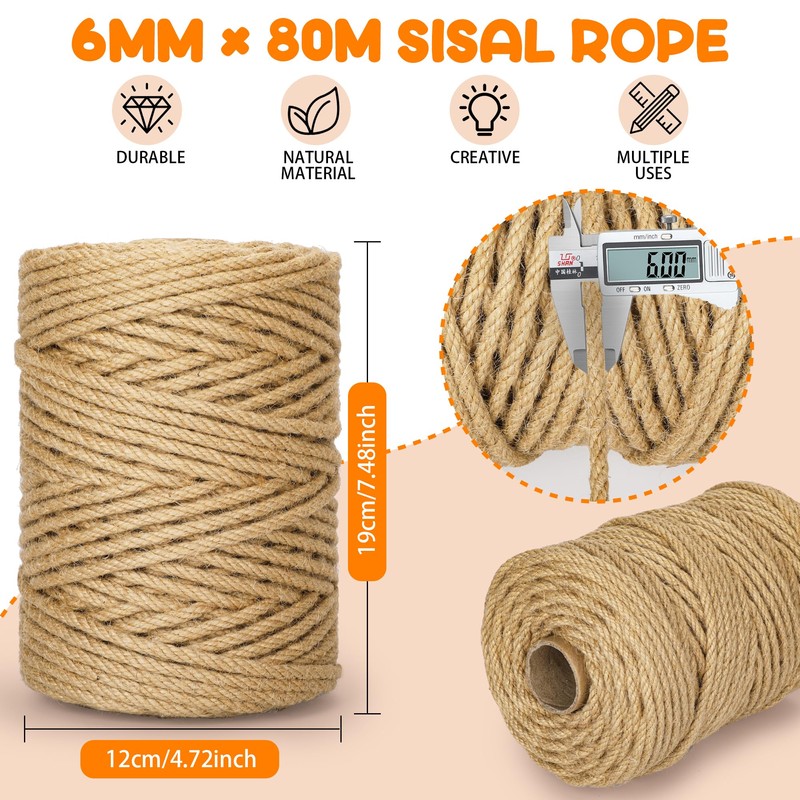 - Sturdy and Long-lasting: With a generous 262FT/80M length, our sisal rope offers plenty of material for multiple repairs and projects. Its sturdy, rough texture satisfies cats' natural scratching instincts and stands up to even the most enthusiastic scratchers