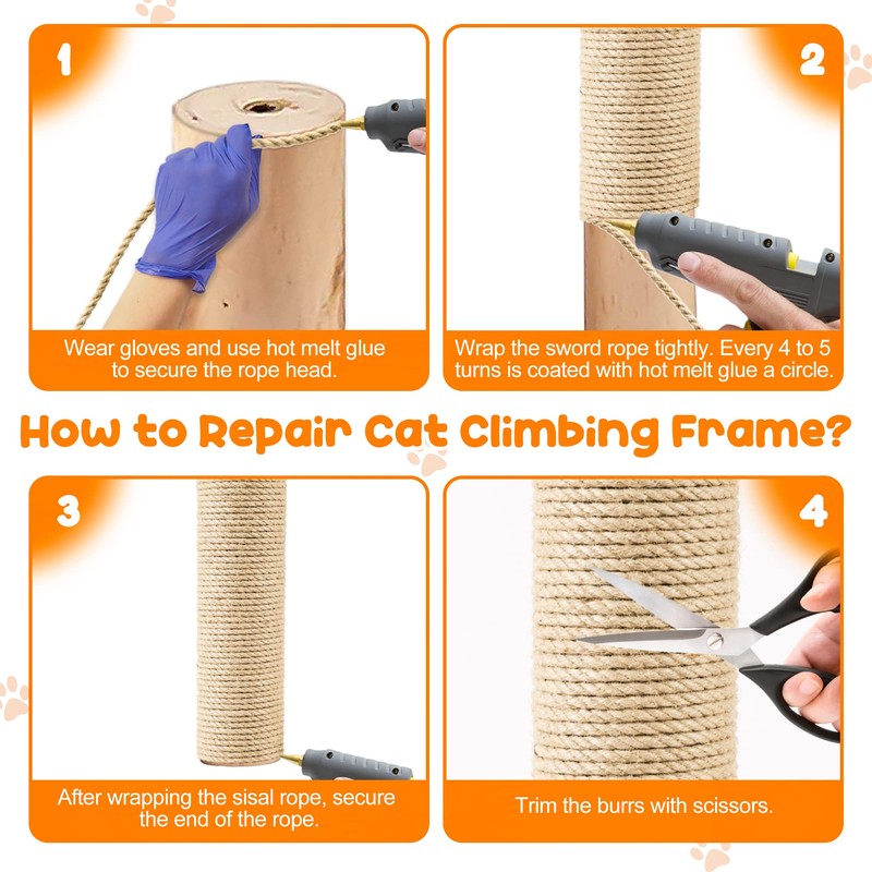 - Simple Setup: Wrap the 6mm/1/4 inch jute rope around surfaces like cat trees or furniture legs and secure with glue for a hassle-free, sturdy cat scratching solution that your feline friends will love
