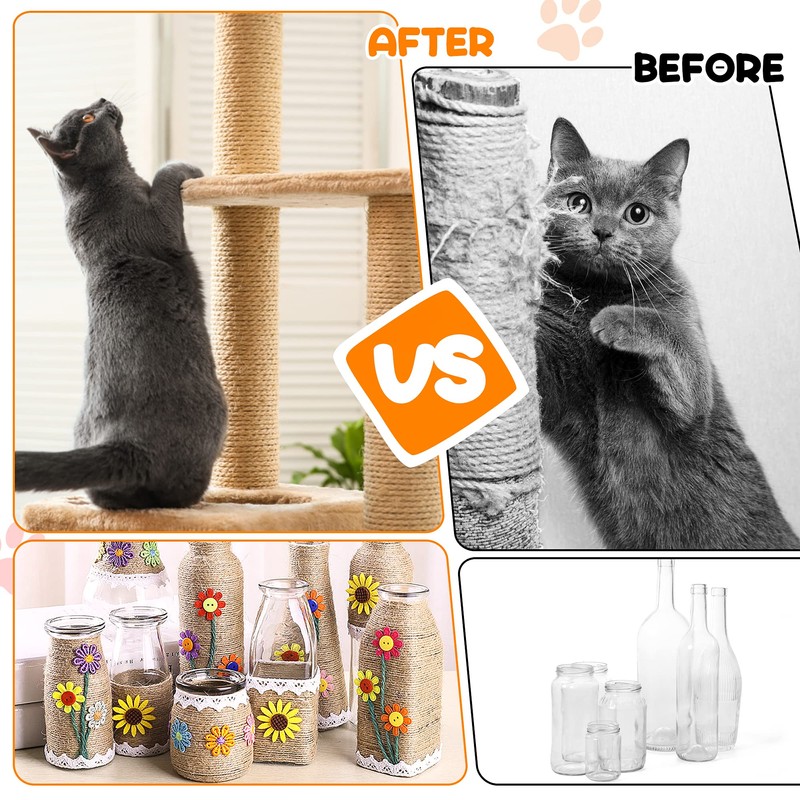 - Versatile Usage: Beyond scratching posts, use this versatile rope for wrapping furniture, pots, or creating custom cat toys. Add a sprinkle of catnip under the rope for extra feline enjoyment and to discourage unwanted scratching on other surfaces
