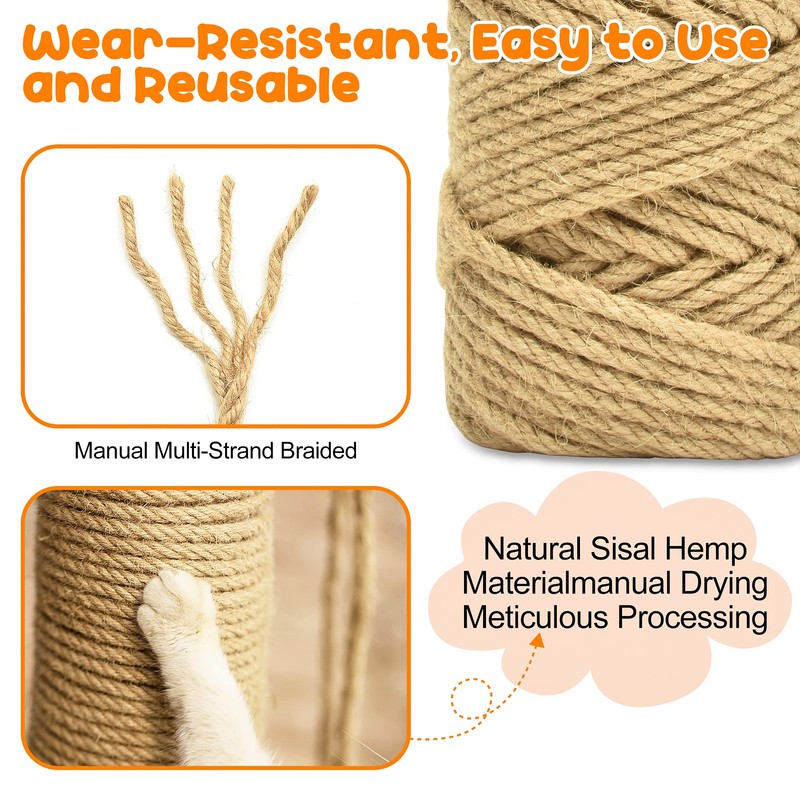 - Natural and Safe Sisal Rope: Crafted from premium, chemical-free sisal fiber, safe for pets and humans. Perfect for eco-conscious cat owners who prioritize their pet's well-being