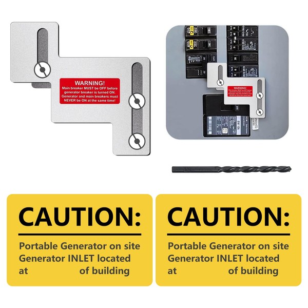 - Package Include:Generator interlock kit include: 1× Interlock Plate,1 × Drill Bit,3 sets of screws, 5 × Remind Label, 2 × Zip Ties, 1 × Installation instruction.