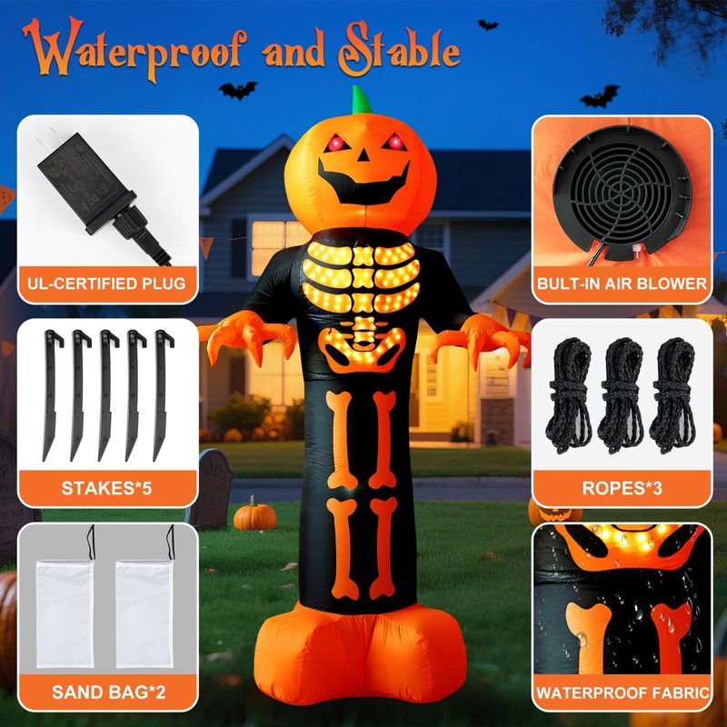 • Strong and Weather-Resistant: Crafted of high-quality waterproof polyester, our pumpkin reaper ghost halloween inflatable blow up decoration is stong for use; Rain or shine, spider inflatables goosh inflatable halloween decorations are strong enough to last throughout the holiday season.