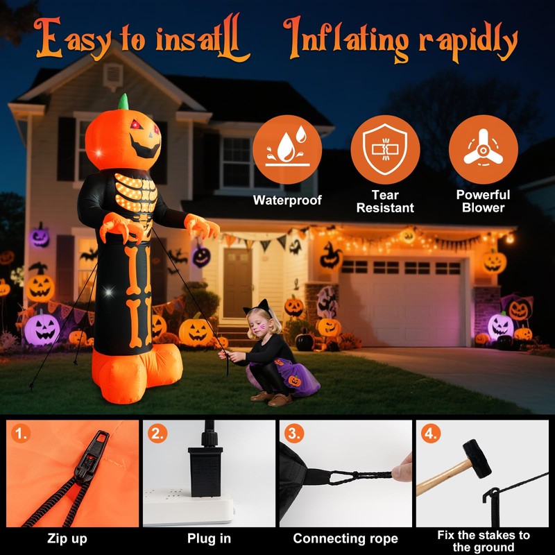 • Easy Use and Storage: Setting up and using this inflatable decoration is hassle-free. It comes with a built-in air pump that allows for quick and easy inflation. Simply plug it in, and the decoration inflates in a matter of minutes. After the holiday, just deflate, fold, and store for the next festive season using the provided storage box.