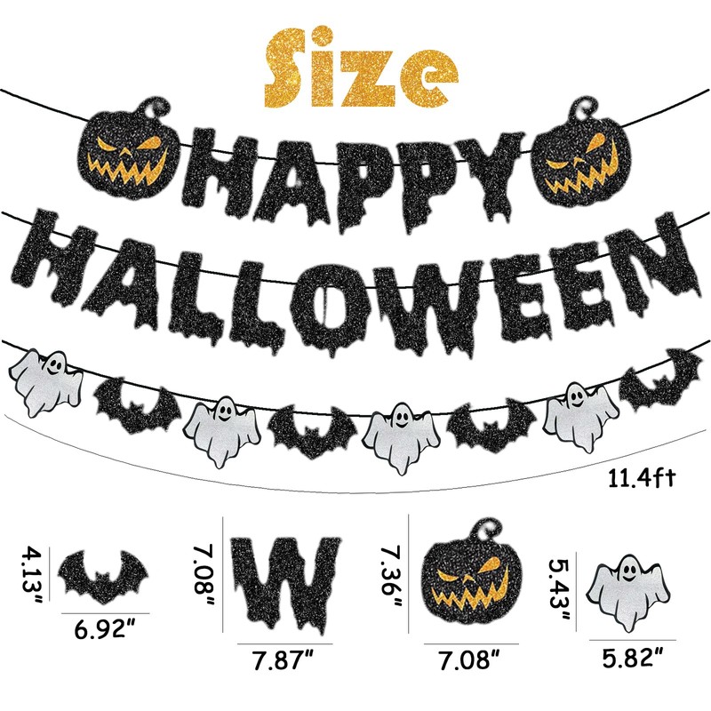 - Premium-Quality Halloween Banner:Made from durable, high-quality cardstock, this Halloween banner is built to last through multiple spooky seasons. The eye-catching black glitter accents add a stylish sparkle and elevate the festive vibe, making it a standout decoration for any Halloween celebration.