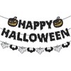 hhdatc Black Glitter "Happy Halloween" Banner Pre-Strung Halloween Garland with Ghost Bat & Pumpkin Cutouts Paper Bunting for Wall Mantel Office Party Photo Backdrop Decorations