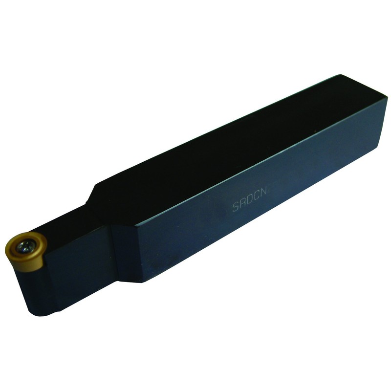 SRDCN 06-6A Turning Tool Holder Zero degree lead angle. 7 degree relief. Shank is 3/8" X 3/8". Overall length is 4 1/2". 3/16" offset. Takes 1 RCMT-0602 #6034-3012 or #6034-3062 insert. Insert screw size is M2.5 X 6. Torx key size is T-8.