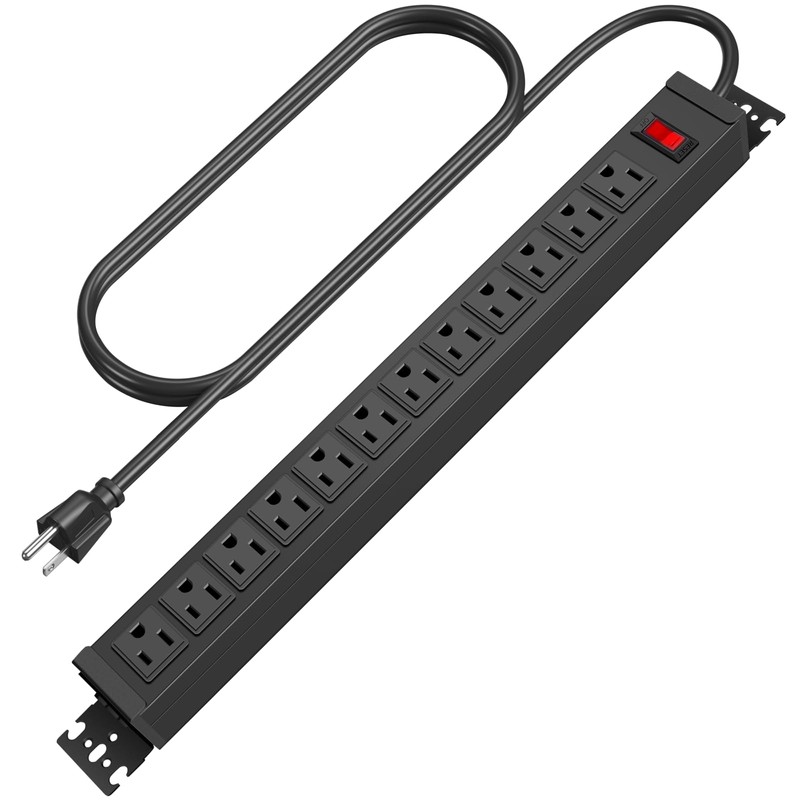 - 12 Outlet Mountable Power Strip: 12 outlets for more of your needs, with a 6-foot 14AWG power cord and 15A high current, max power: 60Hz/125V/15Amp/1875W. Package includes 4 mounting screws.
