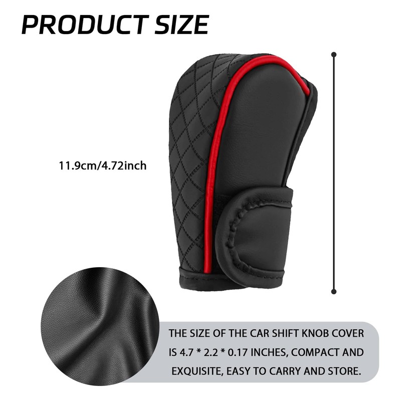 - Material:This car shift knob cover is made of high-quality PU leather, which feels delicate, breathable, wear-resistant, and not easy to age. It is also easy to clean and maintain its beauty