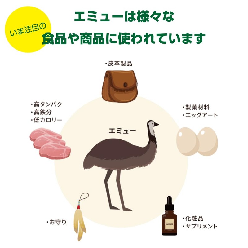 - エミューオイルは人間の皮膚脂質と成分構造がよく似ているため、様々な有用性が明らかになってきている奇跡の成分です 。