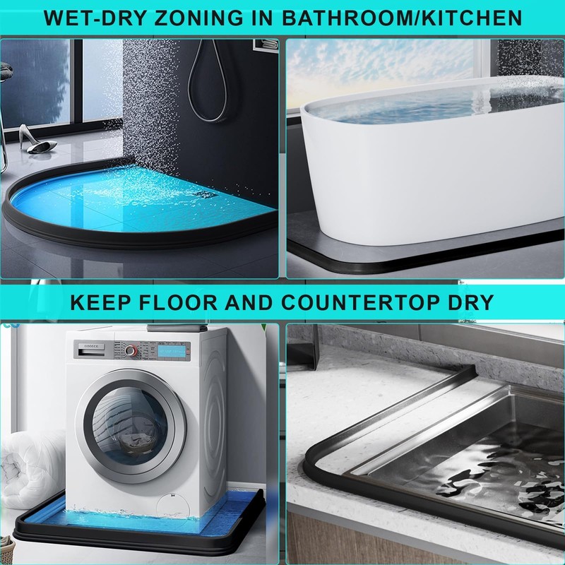 Handiest Collapsible Water Dams, Ideal as a Shower Environmentally friendly silicone material, soft for protection, easy to install for professionals or housewife, our waterproof shower threshold would do a good job in preventing costly floor damage from spillovers. Water dam barrier, water guard, water stopper, splash guard, it would be your first and perfect choice.