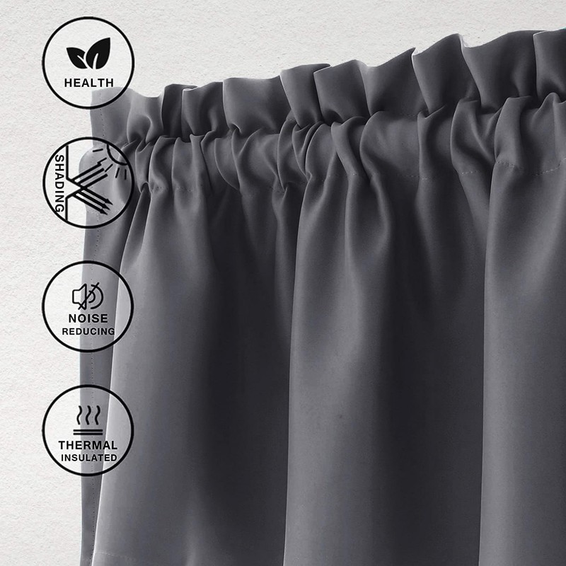 - APPLICABLE SCENARIOS: These sun blocking valances can compliment with any other solid drapes. Suitable for kitchen, living room, bedroom, basement, nursery, Infant room and more.