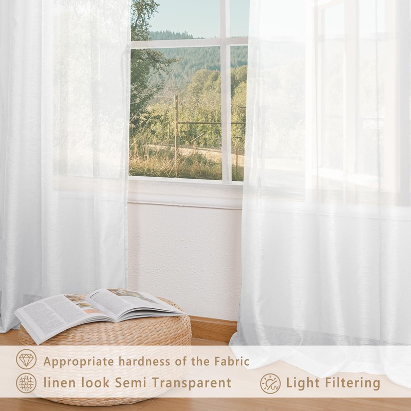 • Material: Our voile curtains are soft and durable, made from 100% polyester fabric. These breathable curtains can filter sunlight and balance the light level between indoors and outdoors. Our practical curtains are ideal for living room, bedroom, baby room, children's room, office, basement, patio door, glass sliding door, dining room and other occasions.