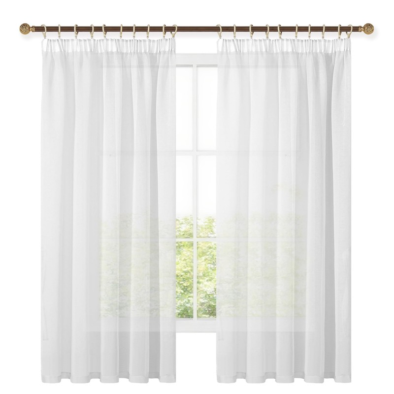 Hiasan Set of 2 Sheer Voile Curtains Living Room with Ruffle Tape Curtains Panel Curtains Transparent Airy Decorative Curtain for Bedroom 160 x 140 cm (H x W) White