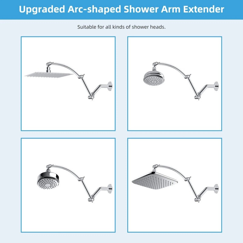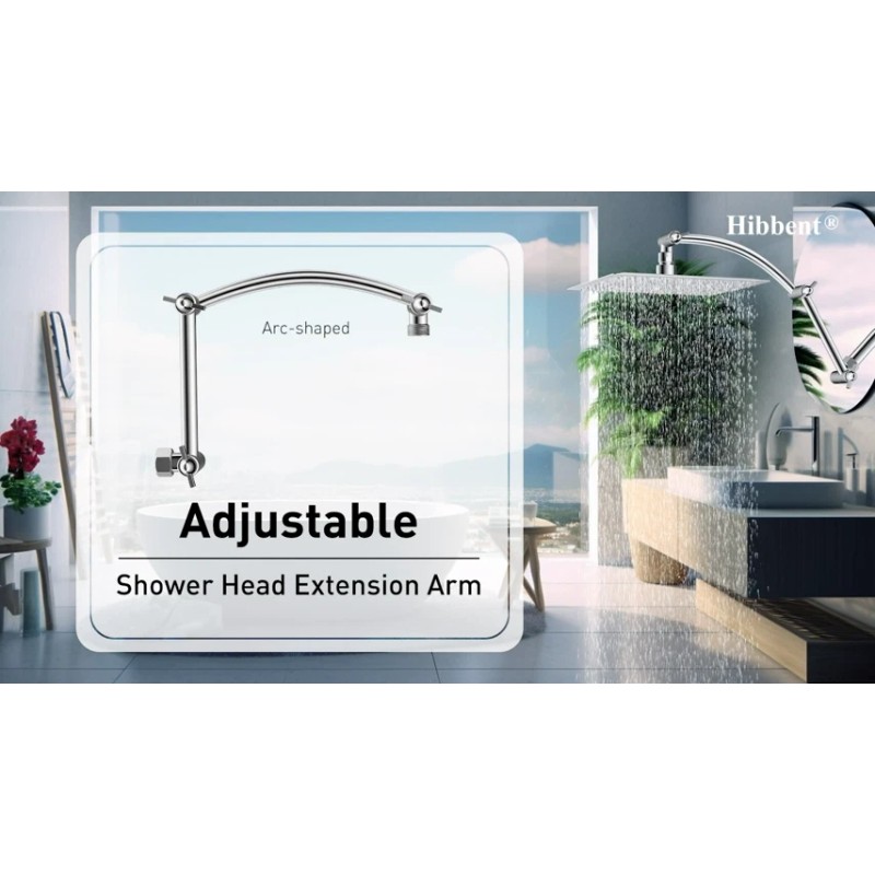 - 【16'' Upgraded Shower Extension Arm】 Height & angle adjustable arc-shaped design enhances its bearing capacity, high rise your shower head to achieve vertical water. Compared with the regular shower arm extender, the Hibbent shower arm extension can raise the shower head higher or lower and keep the shower head in a horizontal position all the way. The shower head is always vertical in your large size and will not hit the shower arm, instead of sloping water like an ordinary straight shower arm.