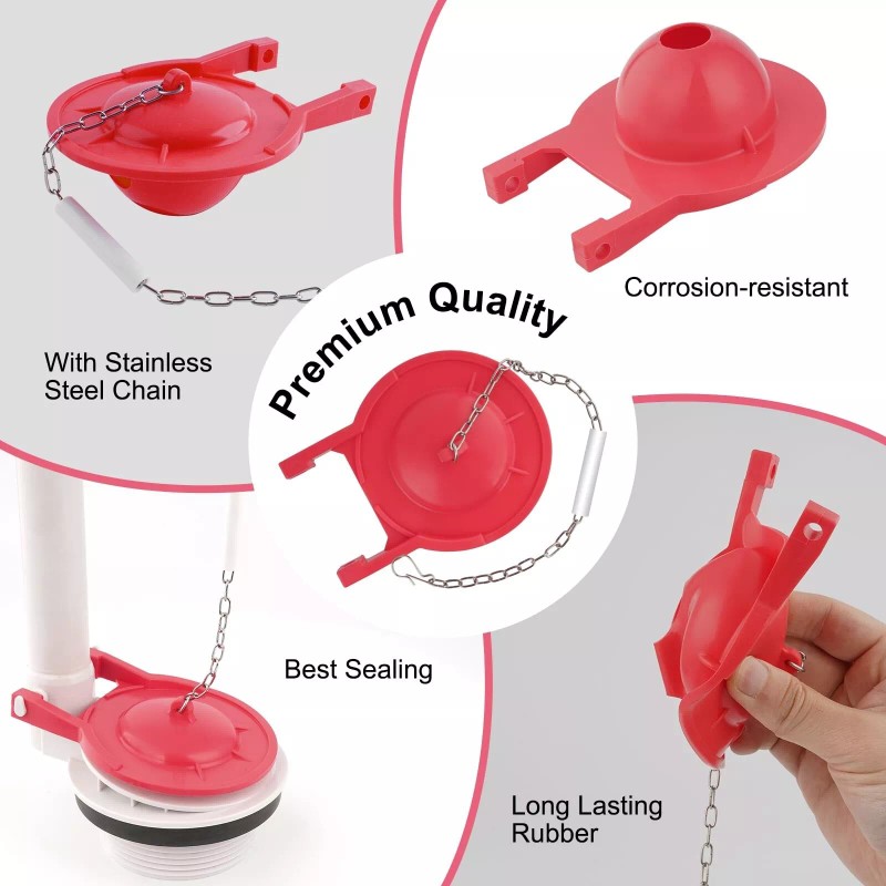 - 5.【Easy to install】 Tools are not required for install and is easy to replace. Simply remove the old flapper, securely fasten the new toilet flapper in the designated location, and install the flapper chain. Includes 3" flapper and stainless steel chain with clip hook.