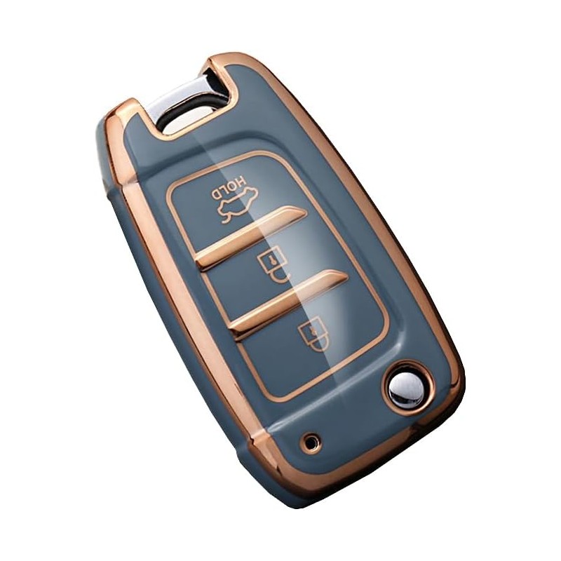 HIBEYO Folding Key Fob Cover for Hyundai Elantra Solaris 2 Tucson I30 I35 I40 Ix35 Kona Genesis Santa Fe Azera Verna Accent Celesta Sonata Accessories Key Shell Cover Protector-Gray