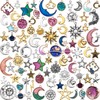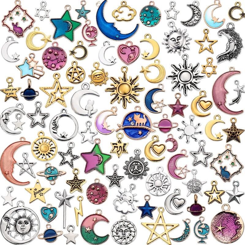 Hicarer - 160 abalorios, dije de estrella de sol y luna, chapado en esmalte, para hacer joyas, Plata, 1