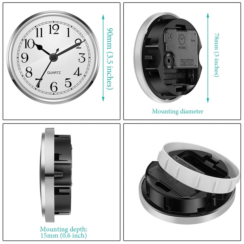 Hicarer 3-1/2 Inch (90 mm) Quartz Clock Fit-up/Insert with Arabic Numeral (Silver)